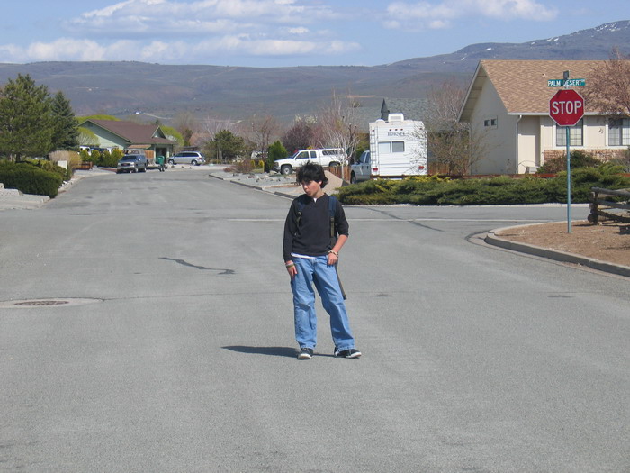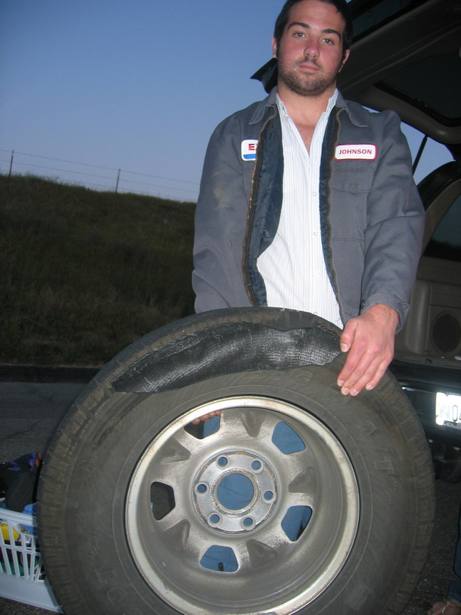 Zac with Flat tire just after leaving Uncle Stewart and Aunt Arleen's house